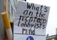 ...was nur mag der mächtigsten Tabaklobbyistin der Welt durch den Kopf gehen, wenn Sie Ihren eigenen Atemweg rettet und Ihre BürgerInnen (lt.:ArbStättV§5 (1)(2)) in den Rauch schickt?!