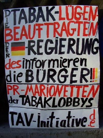 Um sicher zu stellen, dass unsere Kritik an der Regierungsstrategie der Tabakindustrie zur Kenntnis genommen wird, haben wir ungezählte "Tabakopfermahnwachen" organisiert,  Einjede eine aussagekräftige Stellungnahme zur Zeitgeschichte und Bekenntnis für unser Aller guten Verfassung.