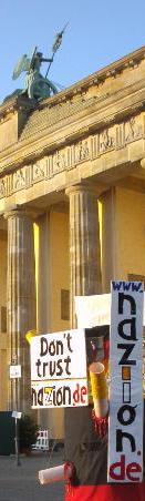Tragen Sie dazu bei, diese neue braune Generation welche sich da mit "Sponsoring" der Tabakindustrie in die Parlamente eingekauft hat und die BürgerInnen propagandistisch  an der Nase herumführt, zum Brandenburger Tor hinaus zu jagen.